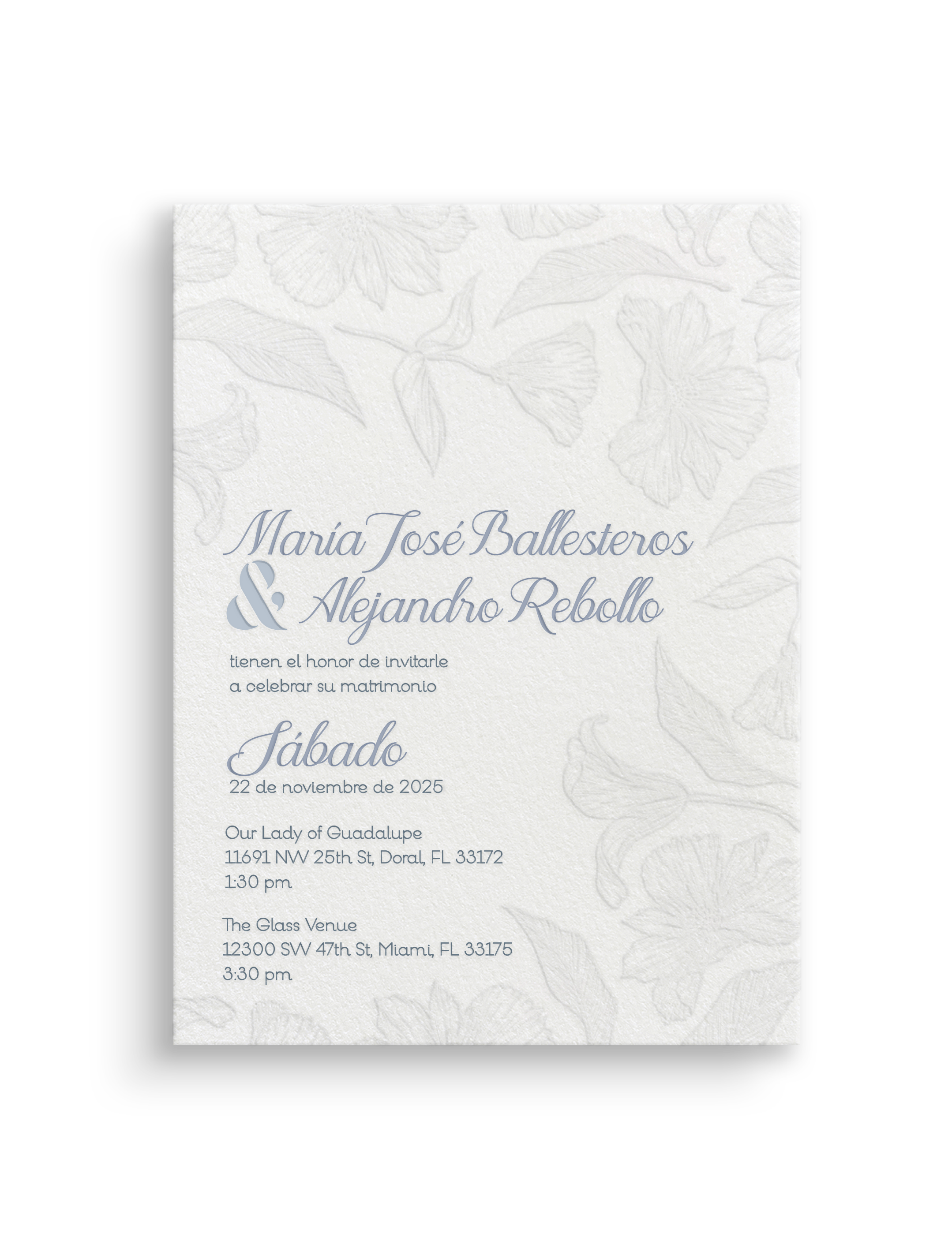 Vestido largo. Para mantener la armonía de la celebración, les solicitamos que los vestidos de las invitadas no sean en color blanco o tonalidades parecidas.